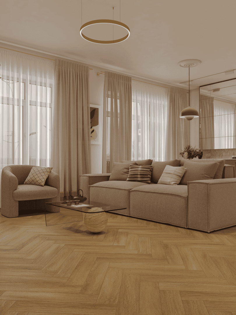 NORLAND PARQUET S 1055-14 Provence представлен в привлекательном ореховом оттенке. Натуральная текстура древесины передана с точностью благодаря полуматовой поверхности, добавляющей ламинату особую глубину и богатство. Тиснение обеспечивает плавный переход между элементами, подходящее для современного интерьера.