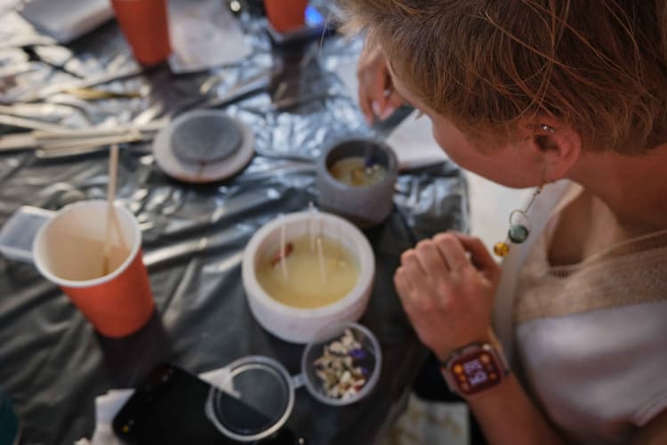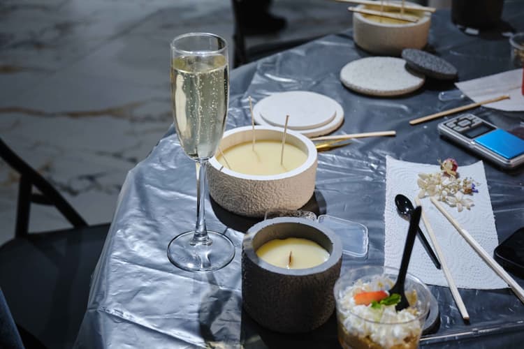 Каждый дизайнер смог самостоятельно выбрать два любимых аромата и создать две абсолютно уникальные свечи, отражающие его индивидуальный стиль и предпочтения. Процесс создания свечей сопровождался прослушиванием музыки и непринужденным общением. Участники обменивались опытом, делились идеями и вдохновлялись друг другом. В перерывах между творческими этапами гостей угощали легкими закусками и напитками.